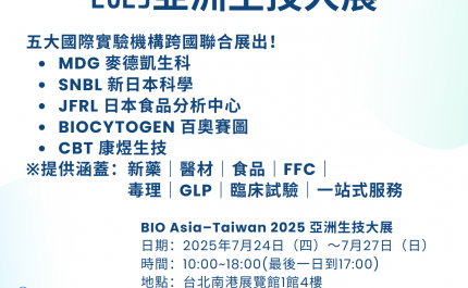 此次於BIO Asia–Taiwan 2025(展位N1009)重磅登場,展示其在毒理學試驗、GLP合規驗證、生物相容性評估、食品安全及功效性評估與法規輔導等一站式服務,並攜手SNBL、JFRL、CBT及Biocytogen等國際級實驗夥伴,展現卓越的跨國整合能力。
