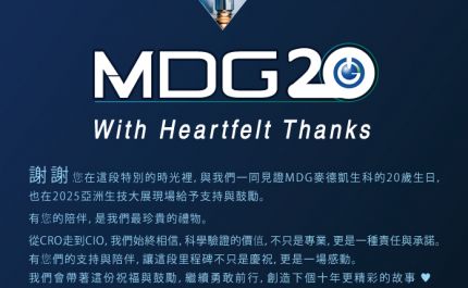 展望未來十年,MDG將以CIO定位,攜手更多台灣品牌從早期開發到全球法規申請,提供策略性研發路徑諮詢與全方位試驗設計支援,協助台灣生技企業有效銜接國際市場規格,結合產業、學術、醫療與研究機構的資源,打造全方位創新合作模式。